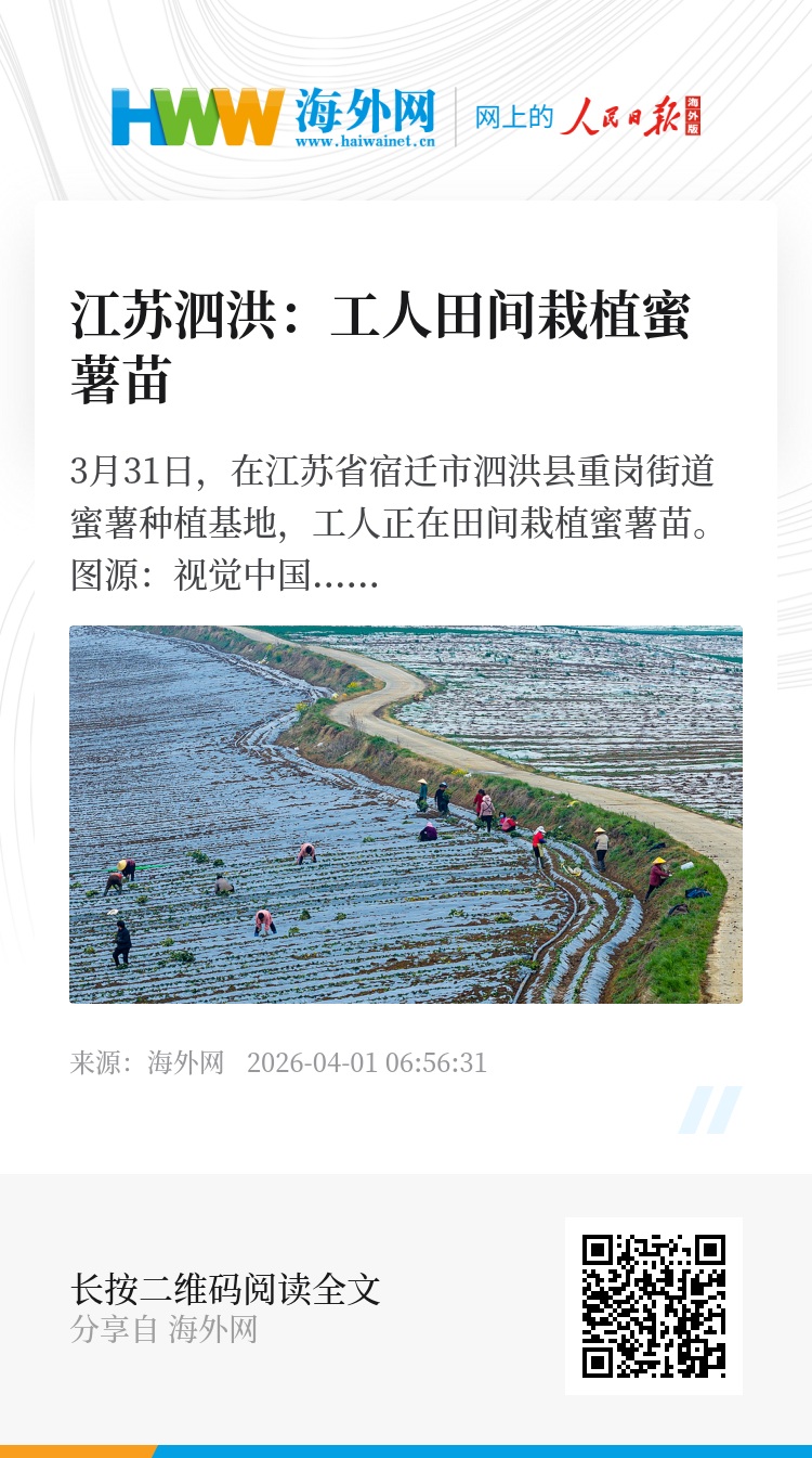 32942006,.江苏泗洪:工人田间栽植蜜薯苗,.2026-04-01 06:56:31,.204441,.张荣耀、卢思宇