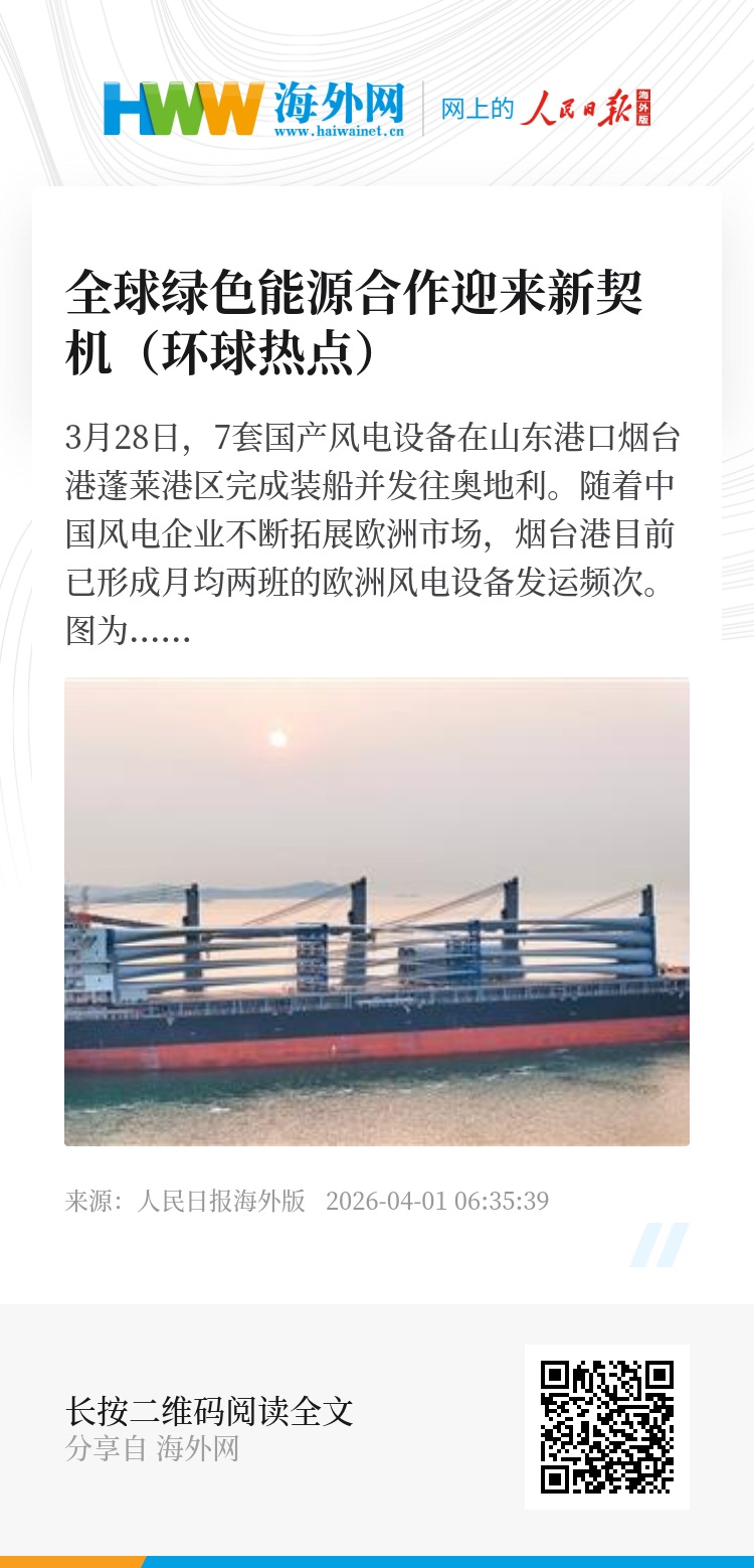 自4月1日起,英国对33类海上风电核心零部件实施零关税,以降低新能源建设成本、加快北海风电布局。专家分析指出,此举既是英国立足能源安全、落实碳中和目标的重要举措,也将对欧洲绿色产业链布局和全球新能源贸易产生深远影响,并再次展现开放合作对推动全球能源低碳转型的重要意义。