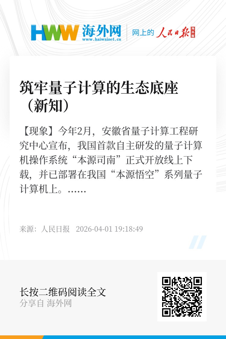 【现象】今年2月,安徽省量子计算工程研究中心宣布,我国首款自主研发的量子计算机操作系统“本源司南”正式开放线上下载,并已部署在我国“本源悟空”系列量子计算机上。作为全球首个开放下载的量子计算机操作系统,“本源司南”有助于降低开发门槛,加速我国量子计算生态自主化建设。