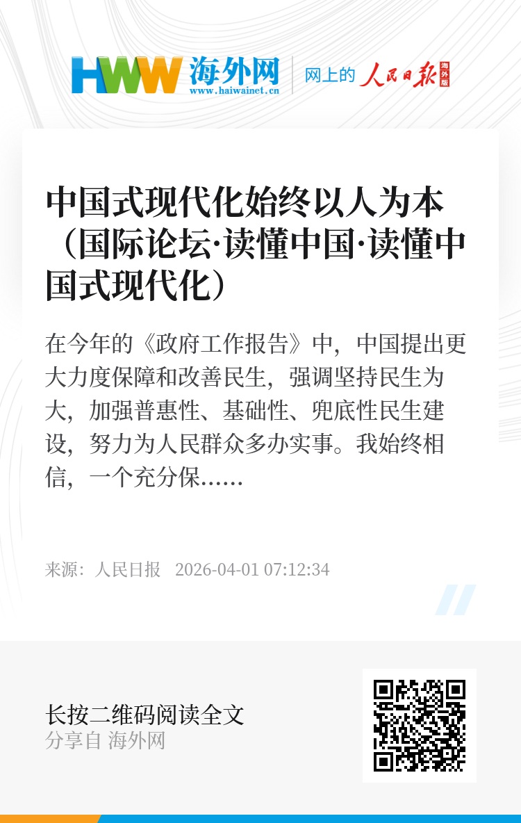 在今年的《政府工作报告》中,中国提出更大力度保障和改善民生,强调坚持民生为大,加强普惠性、基础性、兜底性民生建设,努力为人民群众多办实事。我始终相信,一个充分保障人民福祉、以人民利益至上的国家,才会有发展的希望。