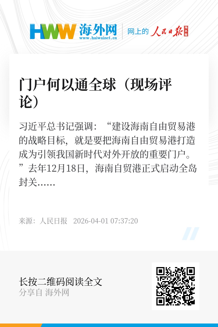 习近平总书记强调:“建设海南自由贸易港的战略目标,就是要把海南自由贸易港打造成为引领我国新时代对外开放的重要门户。”去年12月18日,海南自贸港正式启动全岛封关运作。本版今起推出系列评论,展现封关运作的活力与潜力。