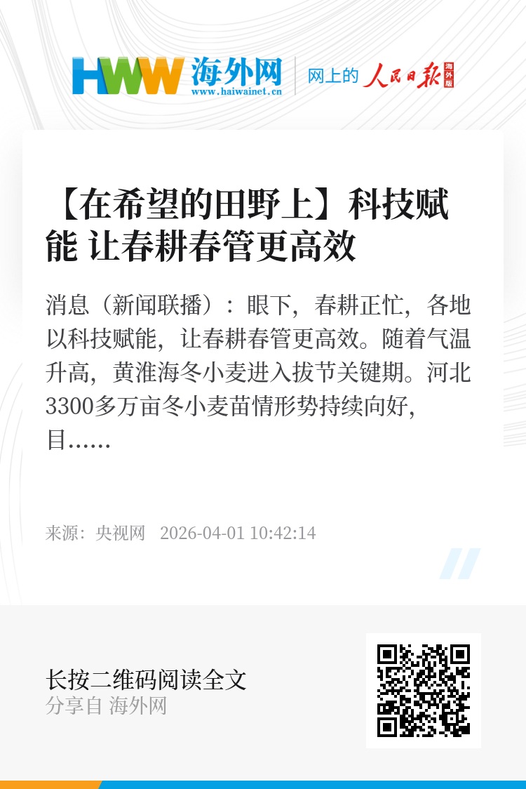 央视网消息(新闻联播):眼下,春耕正忙,各地以科技赋能,让春耕春管更高效。