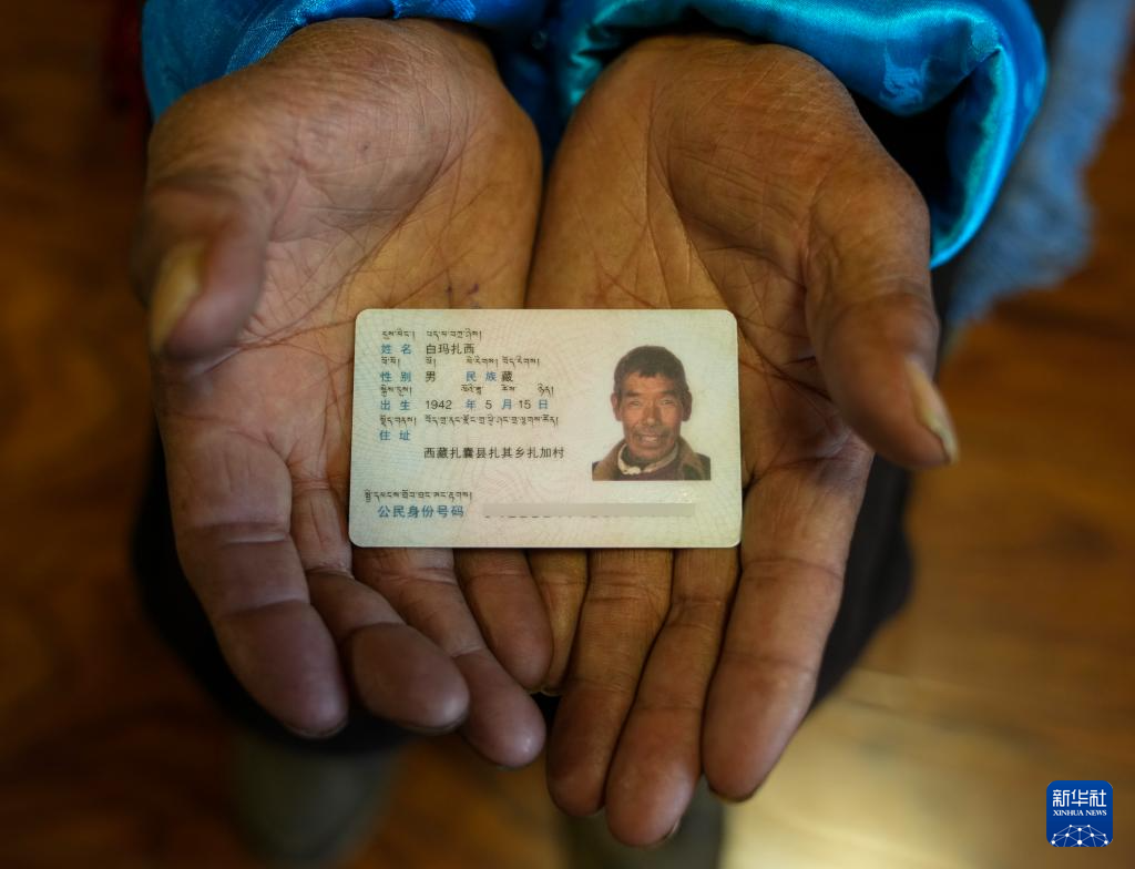 白玛扎西展示自己的身份证(3月26日摄)。