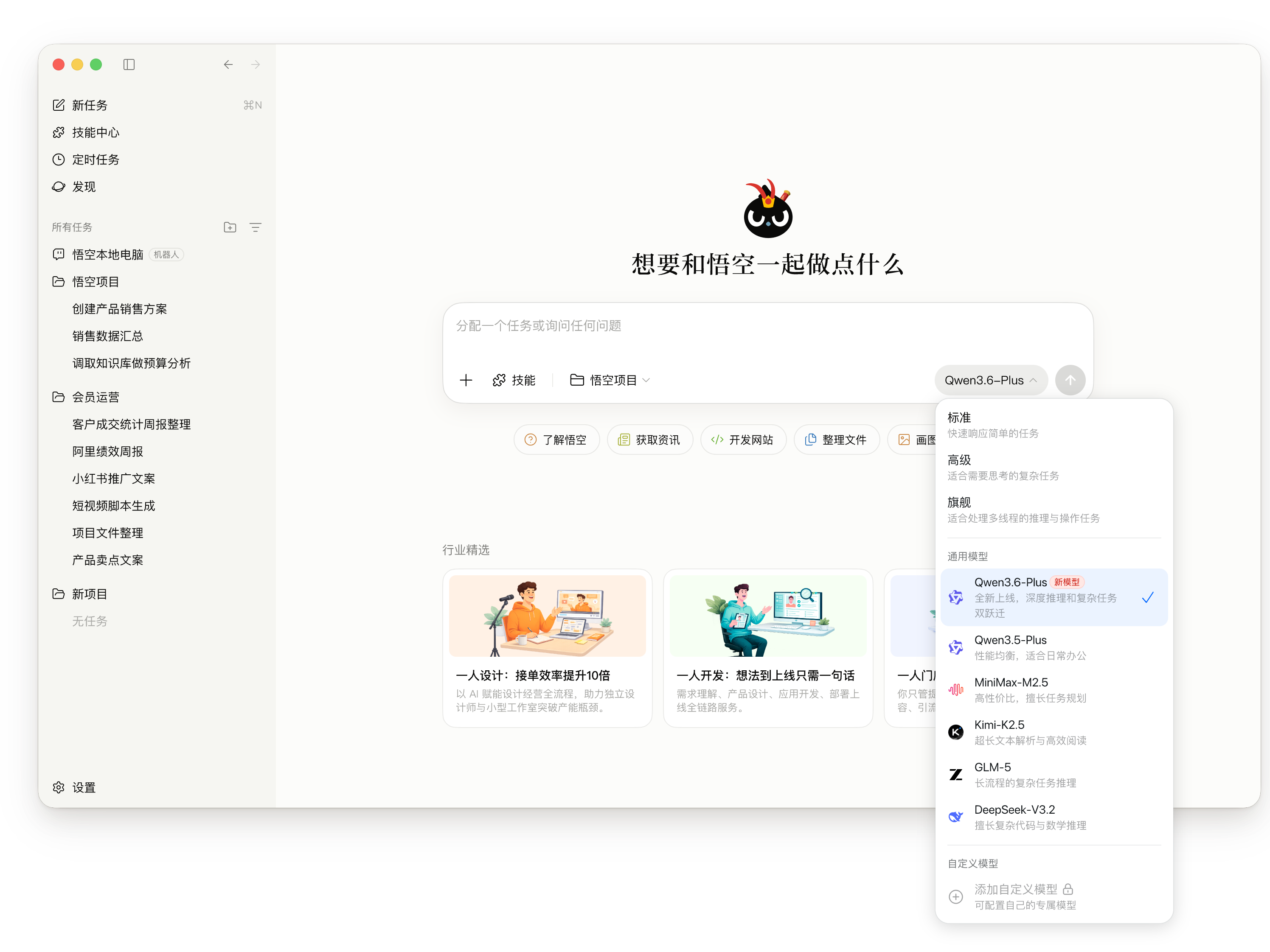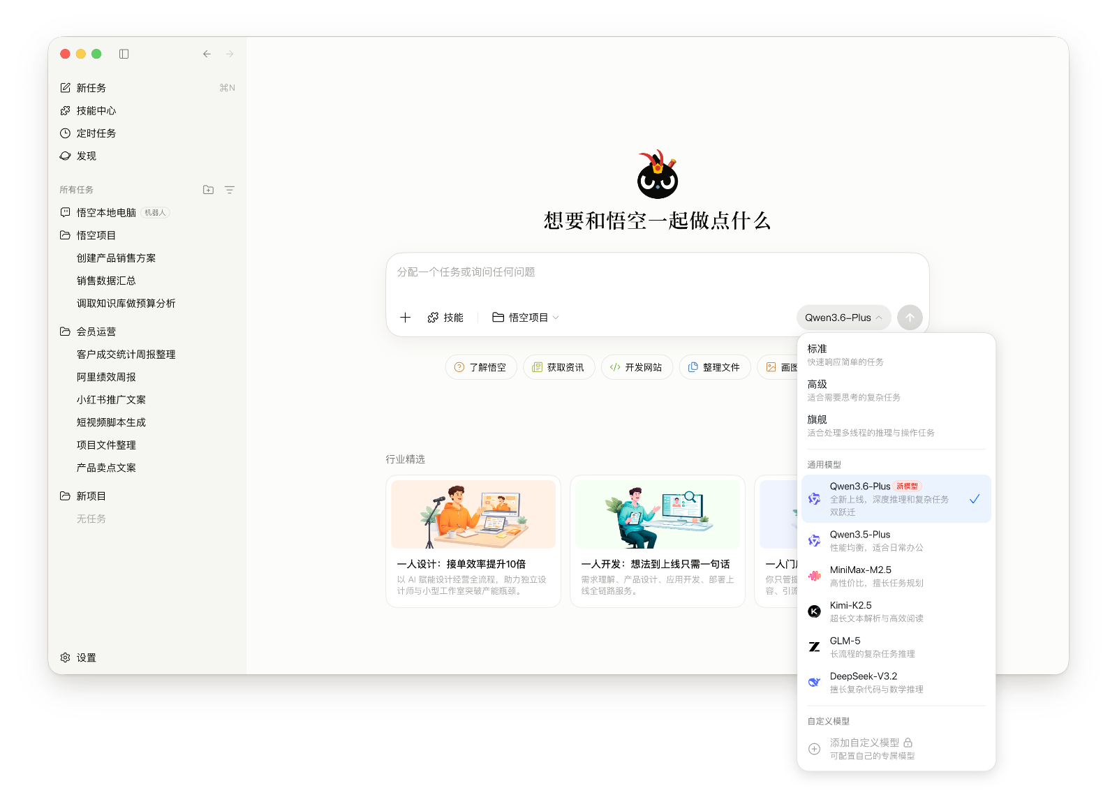悟空作为阿里巴巴企业级 AI旗舰应用,承担着将模型最新技术成果与企业真实需求对接的关键角色,已率先接入Qwen3.6-Plus,为用户带来编程能力更强、执行效果更优、性价比更高的企业级Agent使用体验。