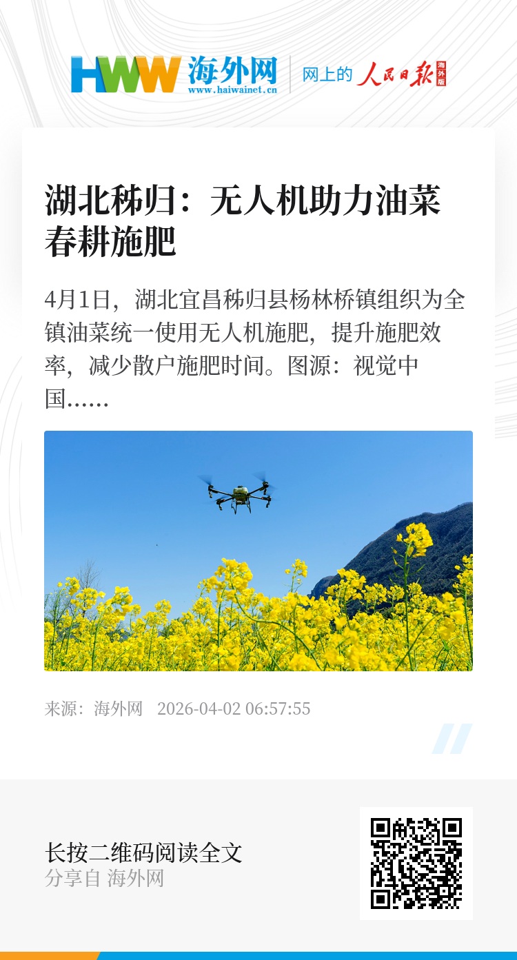 32942355,.湖北秭归:无人机助力油菜春耕施肥,.2026-04-02 06:57:55,.204441,.张荣耀、卢思宇