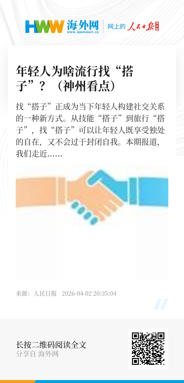 找“搭子”正成为当下年轻人构建社交关系的一种新方式。从技能“搭子”到旅行“搭子”,找“搭子”可以让年轻人既享受独处的自在,又不会过于封闭自我。本期报道,我们走近几位年轻人,记录他们的社交方式。