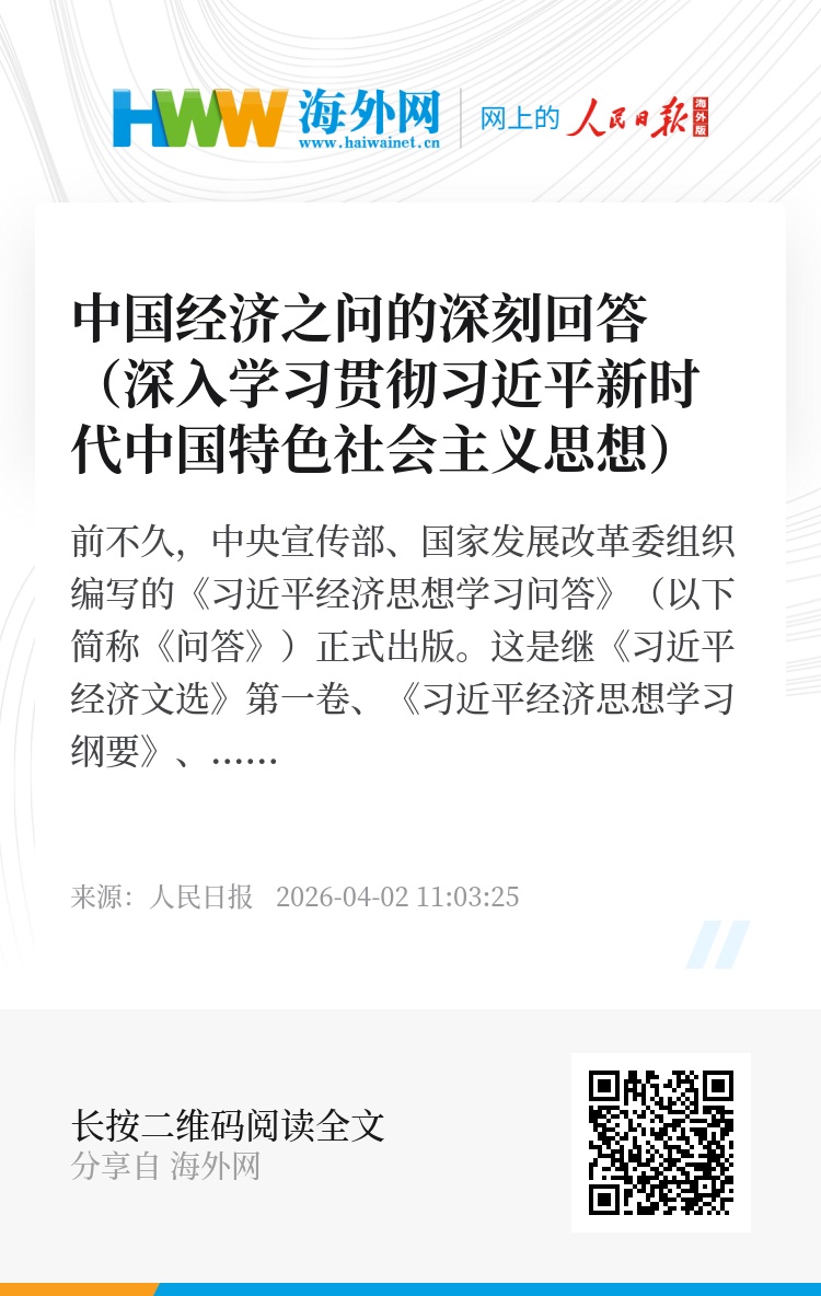 前不久,中央宣传部、国家发展改革委组织编写的《习近平经济思想学习问答》(以下简称《问答》)正式出版。这是继《习近平经济文选》第一卷、《习近平经济思想学习纲要》、《习近平关于社会主义经济建设论述摘编》、《习近平经济思想概论》之后,广大党员、干部、群众深入学习贯彻习近平经济思想的又一部权威读物。《问答》紧扣《习近平经济思想学习纲要》的基本框架,分14个板块、50个问题,以问答体形式对我国经济发展一系列热点焦点问题作出系统全面回答。学好用好《问答》,对于把学习贯彻习近平经济思想不断引向深入具有重要促进作用。