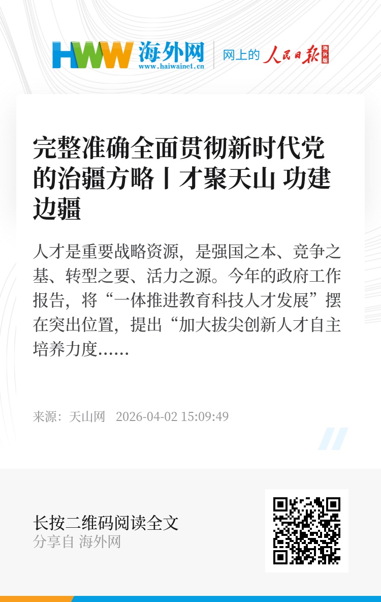 国家发展靠人才,民族振兴靠人才,推动新疆高质量发展、实现社会稳定和长治久安更要靠人才。