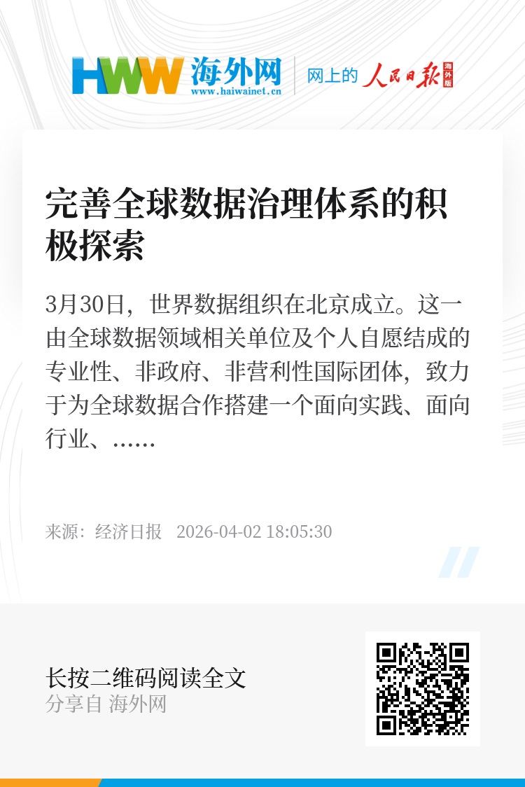 还要看到,推动数据开发利用,必须坚持安全有序。数据越是广泛流动、深度应用,越要坚持安全、合规、可信。只有在尊重各国法律法规、兼顾各方合理关切的基础上推进合作,才能在守住安全底线的同时提升流通效率、释放数据价值,为数字经济健康发展筑牢基础。世界数据组织的成立,正为深化全球数据治理合作、促进数据安全合理使用提供重要平台。