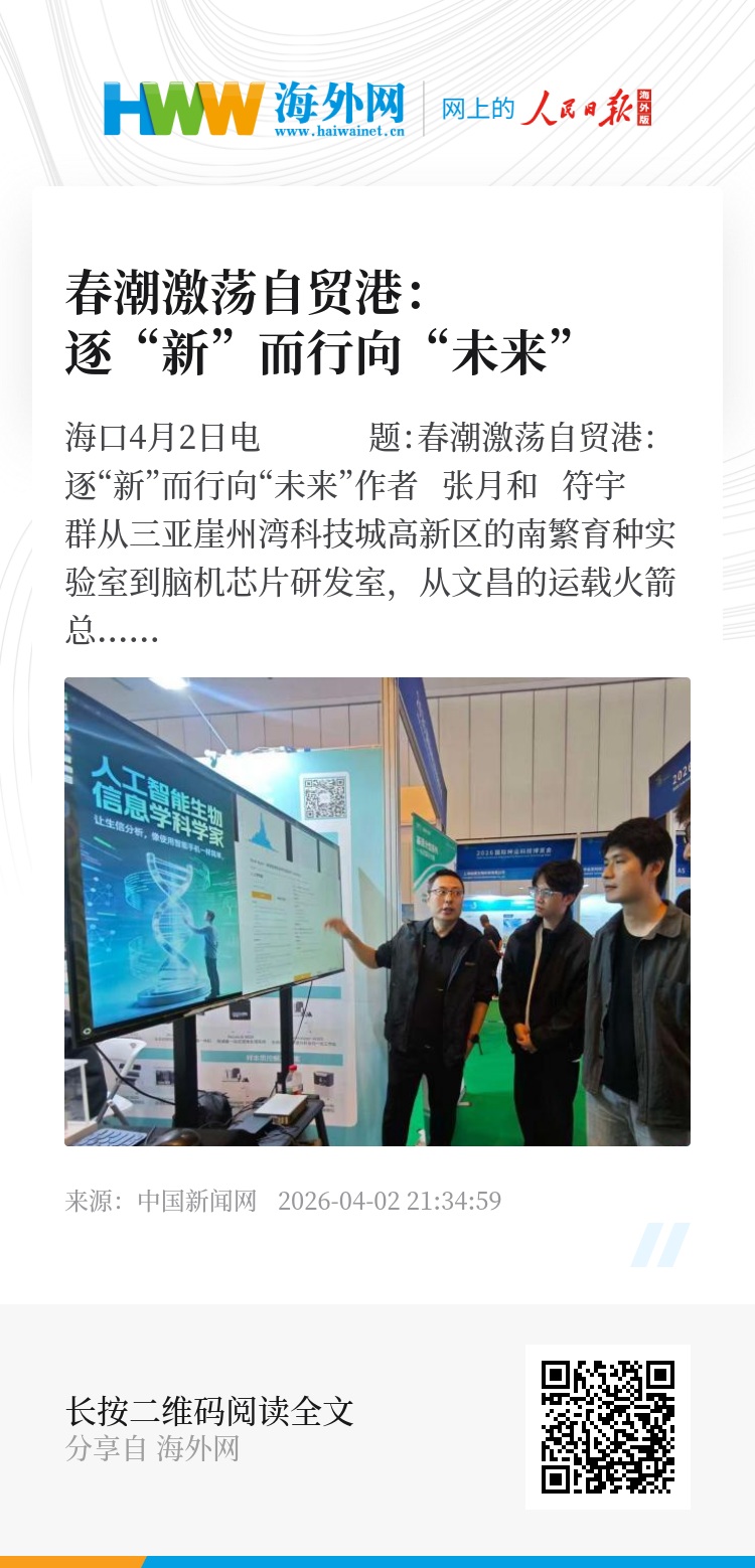 中新网海口4月2日电 题:春潮激荡自贸港:逐“新”而行向“未来”