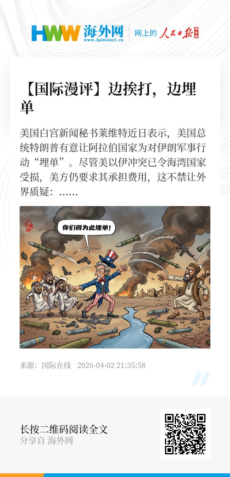 美国白宫新闻秘书莱维特近日表示,美国总统特朗普有意让阿拉伯国家为对伊朗军事行动“埋单”。尽管美以伊冲突已令海湾国家受损,美方仍要求其承担费用,这不禁让外界质疑:美国究竟是将这些国家当成盟友,还是当成“冤大头”?