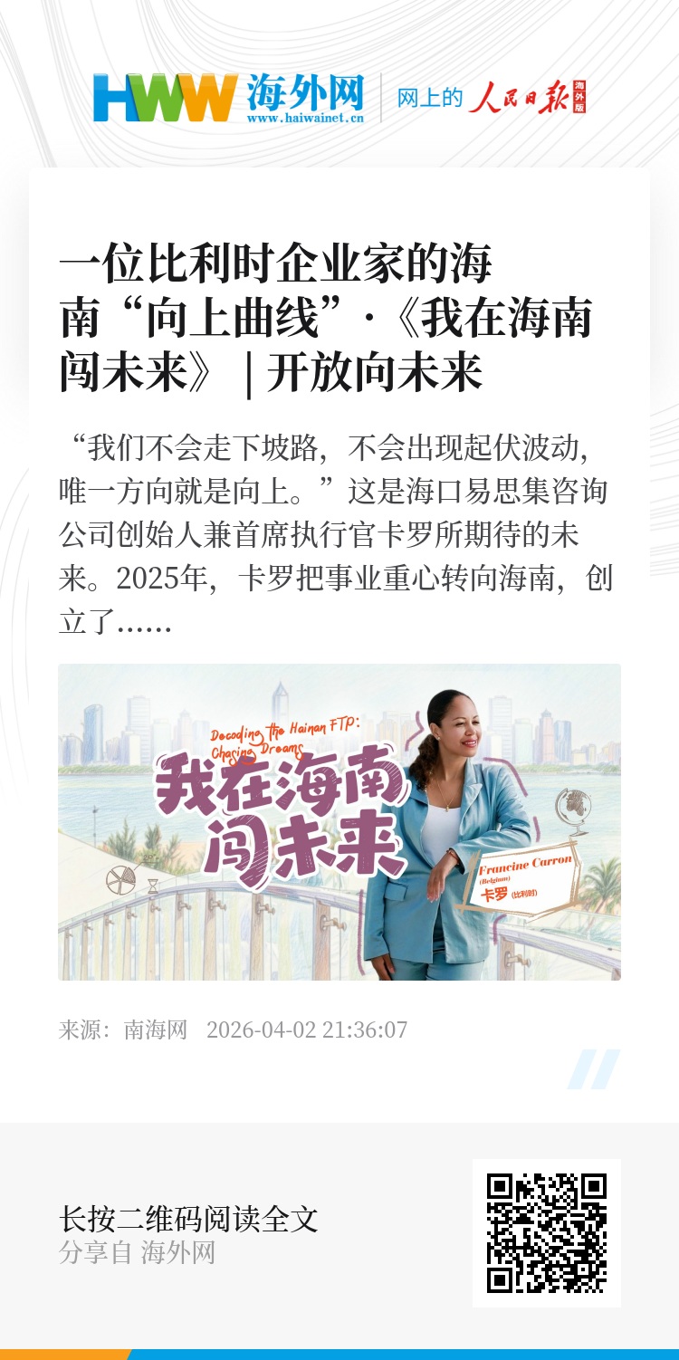 从比利时到海南,卡罗正绘制属于自己的“向上曲线”,也与海南自贸港的绿色转型之路交汇同行。