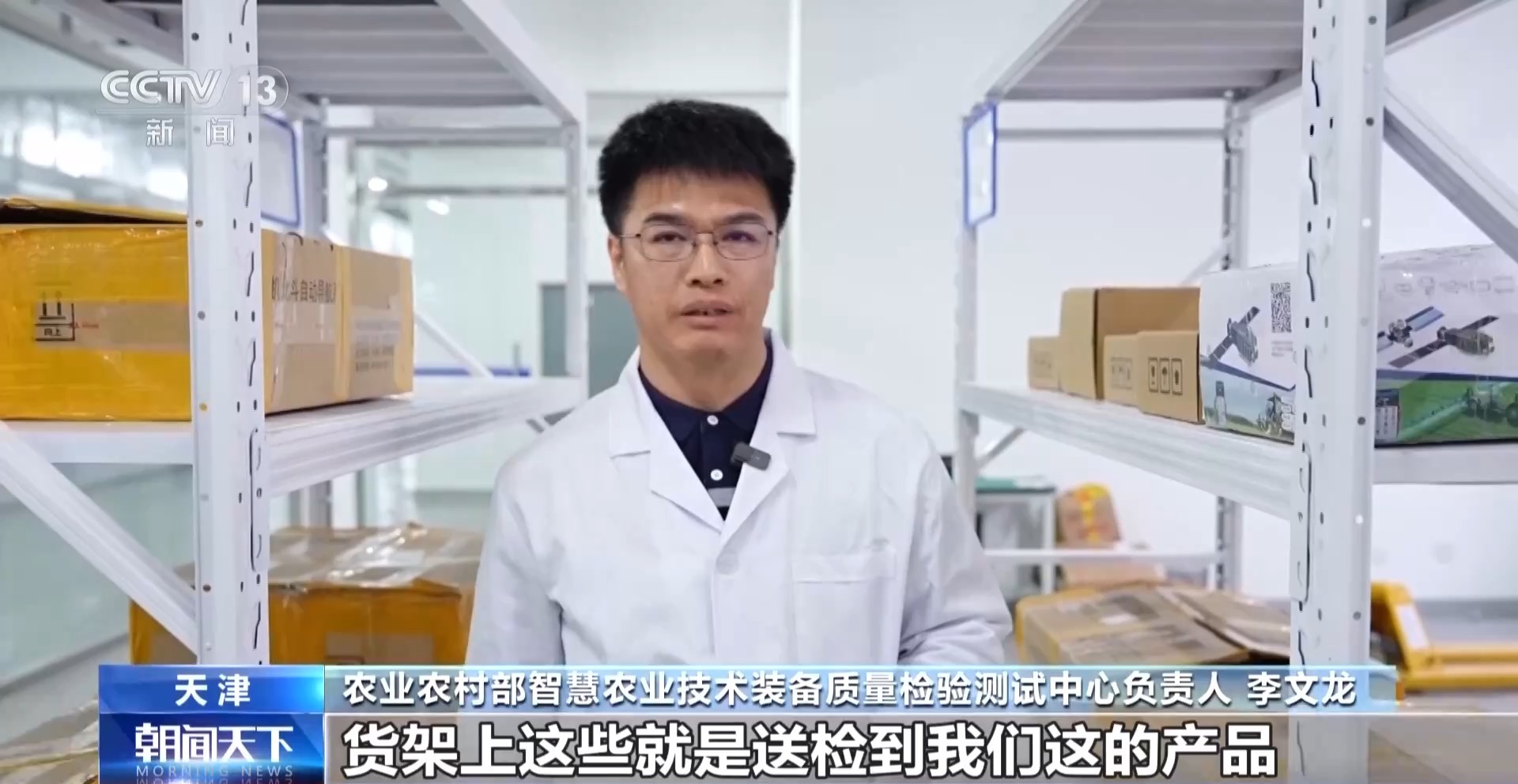 农业农村部智慧农业技术装备质量检验测试中心负责人 李文龙:货架上这些就是送检到我们这的产品,来自全国10个省份,25家企业,主要包括农机辅助驾驶系统、农机定位监测终端等。这些年来我们国家的智慧农业技术装备发展得特别迅速,诞生了一些初创企业,产品的型号也不断增加。