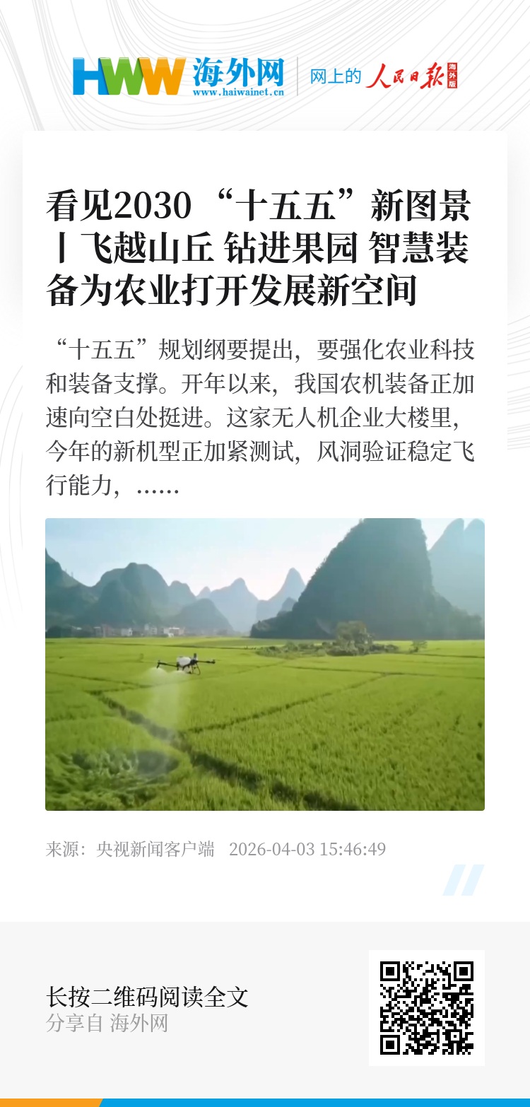翻开“十五五”规划纲要,农业农村现代化图景愈发清晰。人工智能辅助下,核心品种育种周期缩短20%,一批突破性品种加速推广应用;一个个智慧农场里,卫星、多光谱无人机、环境传感器搭建起天空地一体化监测网络,实时感知作物长势,各类智能农机在AI大模型调度下分工有序、精耕细作,助推我国粮食产能迈上1.45万亿斤左右新台阶。