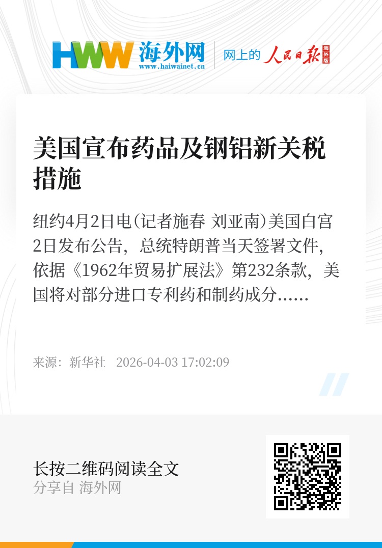 白宫宣称,以上措施旨在强化国内制药业基础,维护美国的经济和国家安全利益。