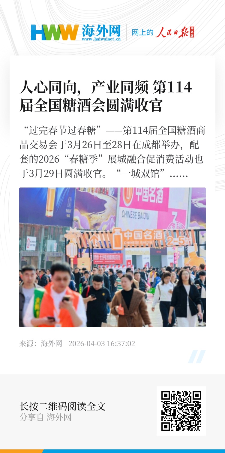 “过完春节过春糖”——第114届全国糖酒商品交易会于3月26日至28日在成都举办,配套的2026“春糖季”展城融合促消费活动也于3月29日圆满收官。