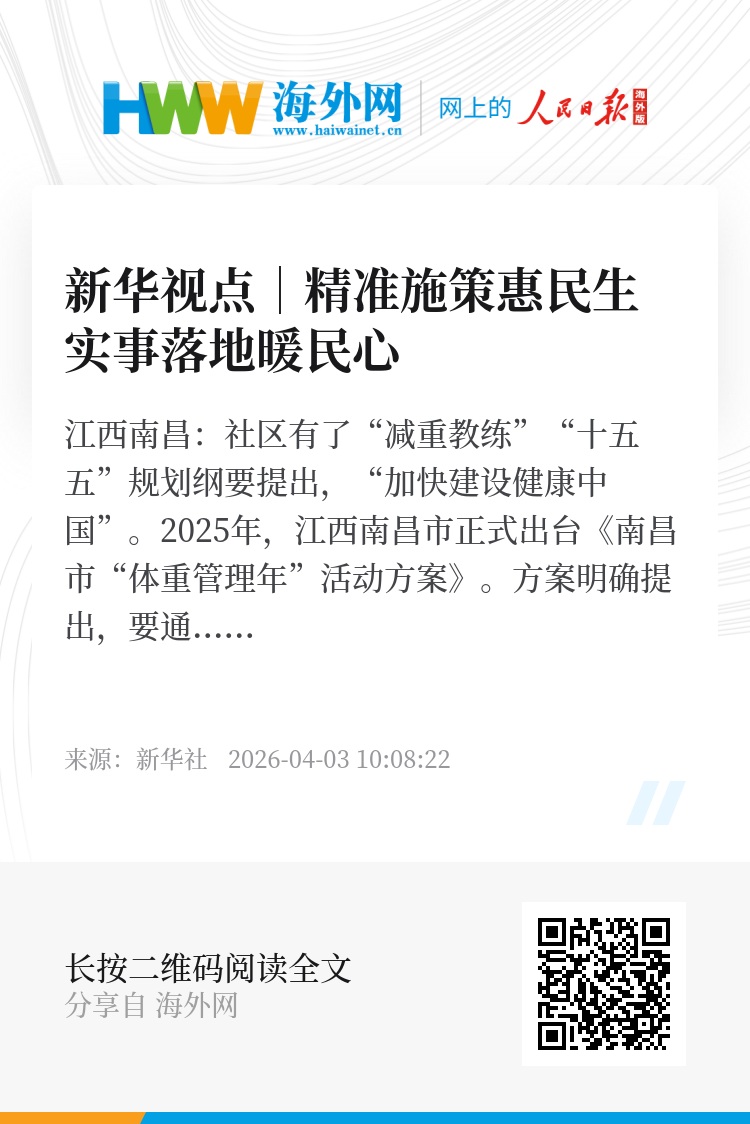 2025年,江西南昌市正式出台《南昌市“体重管理年”活动方案》。方案明确提出,要通过三年左右时间,实现成人、中小学生超重肥胖率年均增幅在基线基础上下降10%的目标。从“校园周边500米内避免售卖高糖高脂食品”,到“保障学生每天校内校外各1小时体育活动时间”,一系列要求正在从文件走向现实。而社区卫生服务中心,正是这场“体重管理”行动的第一道关口。