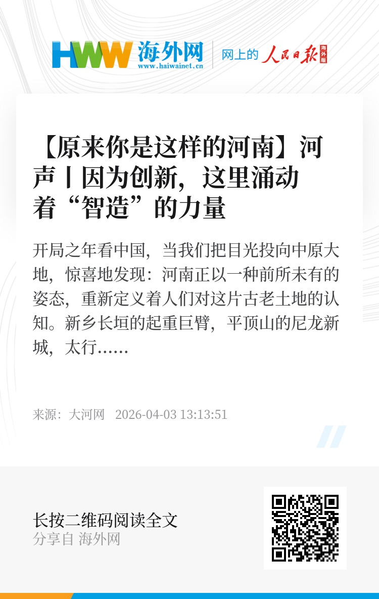 开局之年看河南,我们看到的不只是产业的硬核实力,更是这片土地上的人们对未来的信心与坚守。当“起重梦”酿成了骄傲,当一块煤完成了华丽变形,当中原大地处处涌动着智造的澎湃力量——“原来你是这样的河南”,这句感叹里,饱含着对中国式现代化建设河南实践的由衷赞叹,更寄托着对中部地区崛起的殷切期待。智造未来,河南正以实干书写答卷。(大河网特约评论员 王雪梅)