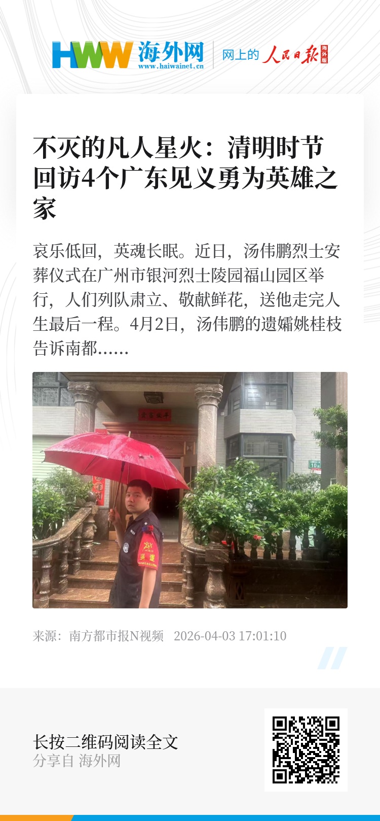 又是一年清明时节,中央政法委公布,全国确认见义勇为人员累计超过17.8万人,有许多见义勇为英雄为保护人民群众生命财产安全献出宝贵生命,仅2025年就有96人。其中包括南都N视频持续记录的广东凡人英雄汤伟鹏、谢桂、吴秋钟、洪文波等。