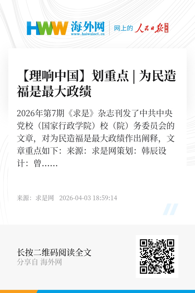 2026年第7期《求是》杂志刊发了中共中央党校(国家行政学院)校(院)务委员会的文章,对为民造福是最大政绩作出阐释,文章重点如下: