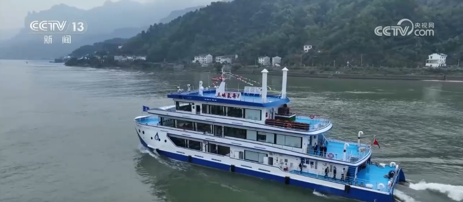长江湖北秭归段是三峡库区,也是长江航运的关键节点。眼下,正是春季水运高峰期,在江面上能看到很多满载货物的大型运输船往来穿梭。船行江上,其实能看到一个非常明显的变化,就是过去常见的柴油船,越来越多地被新能源船所替代。比如,此时此刻我们乘坐的就是“海巡12931”纯电池动力船。它是采用锂动力电池作为全船唯一动力源,航速可达到29公里每小时,不仅跑得快,航行时无噪音、无燃油废气;相比柴油船,耗能降低三分之二左右,船舶污染物实现零排放。为了让电动船跑得稳、续航足,在长江三峡通航综合服务区,就有多种类型的绿色岸电设施,可以满足多样化的船舶用能需求。