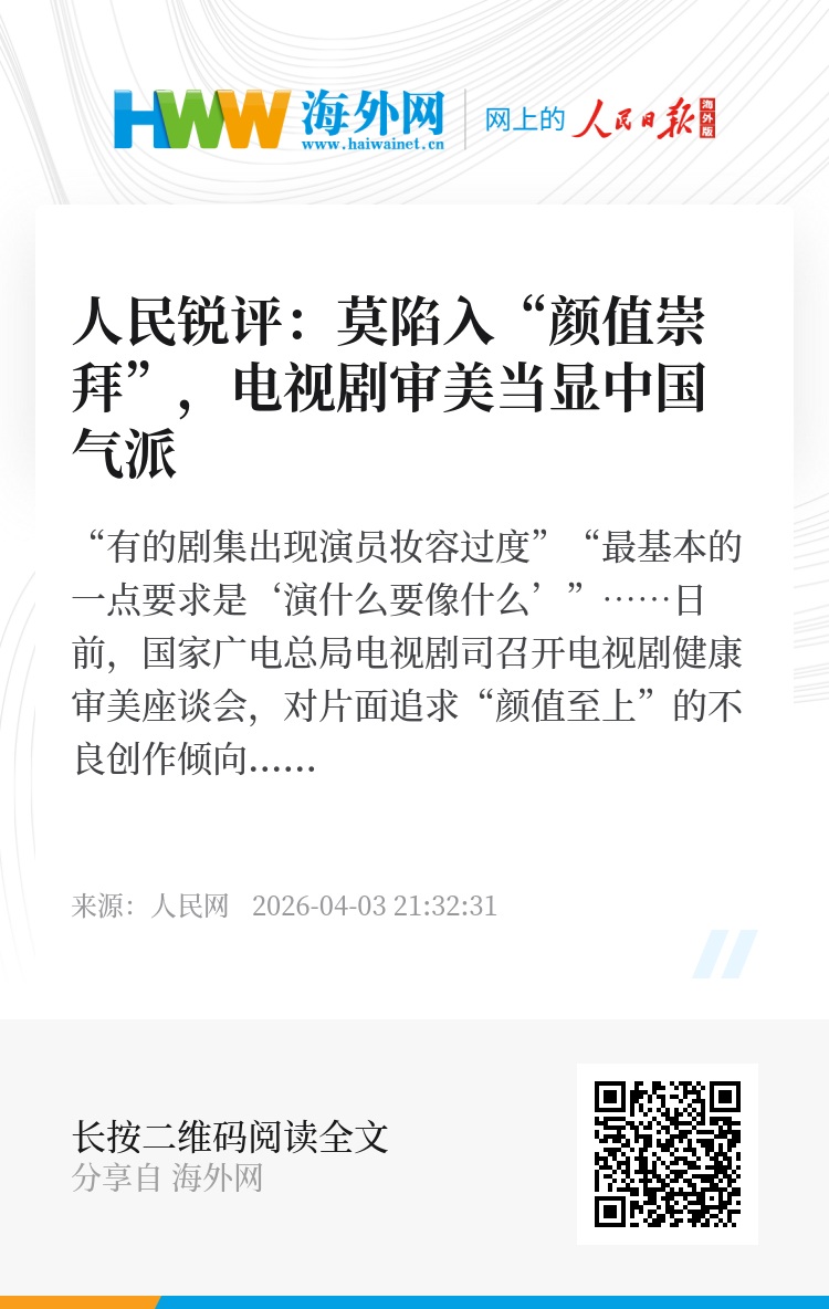 “有的剧集出现演员妆容过度”“最基本的一点要求是‘演什么要像什么’”……日前,国家广电总局电视剧司召开电视剧健康审美座谈会,对片面追求“颜值至上”的不良创作倾向进行纠偏,在社会各界引发广泛共鸣。