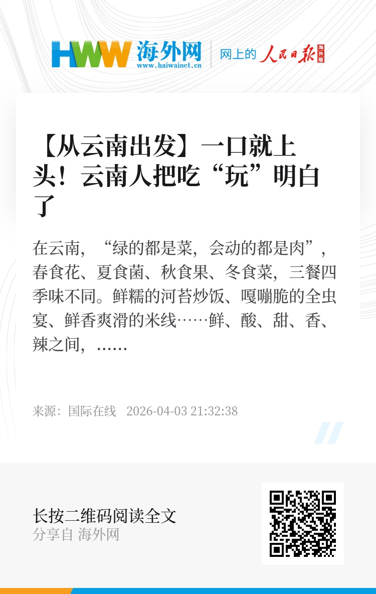 在云南,“绿的都是菜,会动的都是肉”,春食花、夏食菌、秋食果、冬食菜,三餐四季味不同。鲜糯的河苔炒饭、嘎嘣脆的全虫宴、鲜香爽滑的米线……鲜、酸、甜、香、辣之间,蕴藏着云南的万种风情。