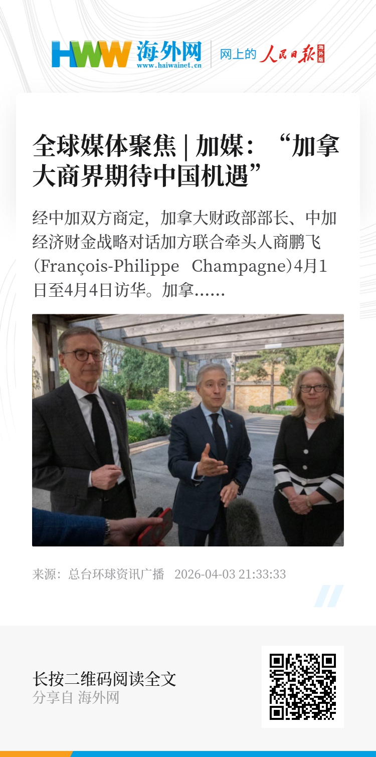 文章援引商鹏飞的话报道说,此次访问旨在落实加总理卡尼关于促进全球贸易多元化和扩大化的承诺,以应对美国政府对加拿大商品实施的一系列关税措施。