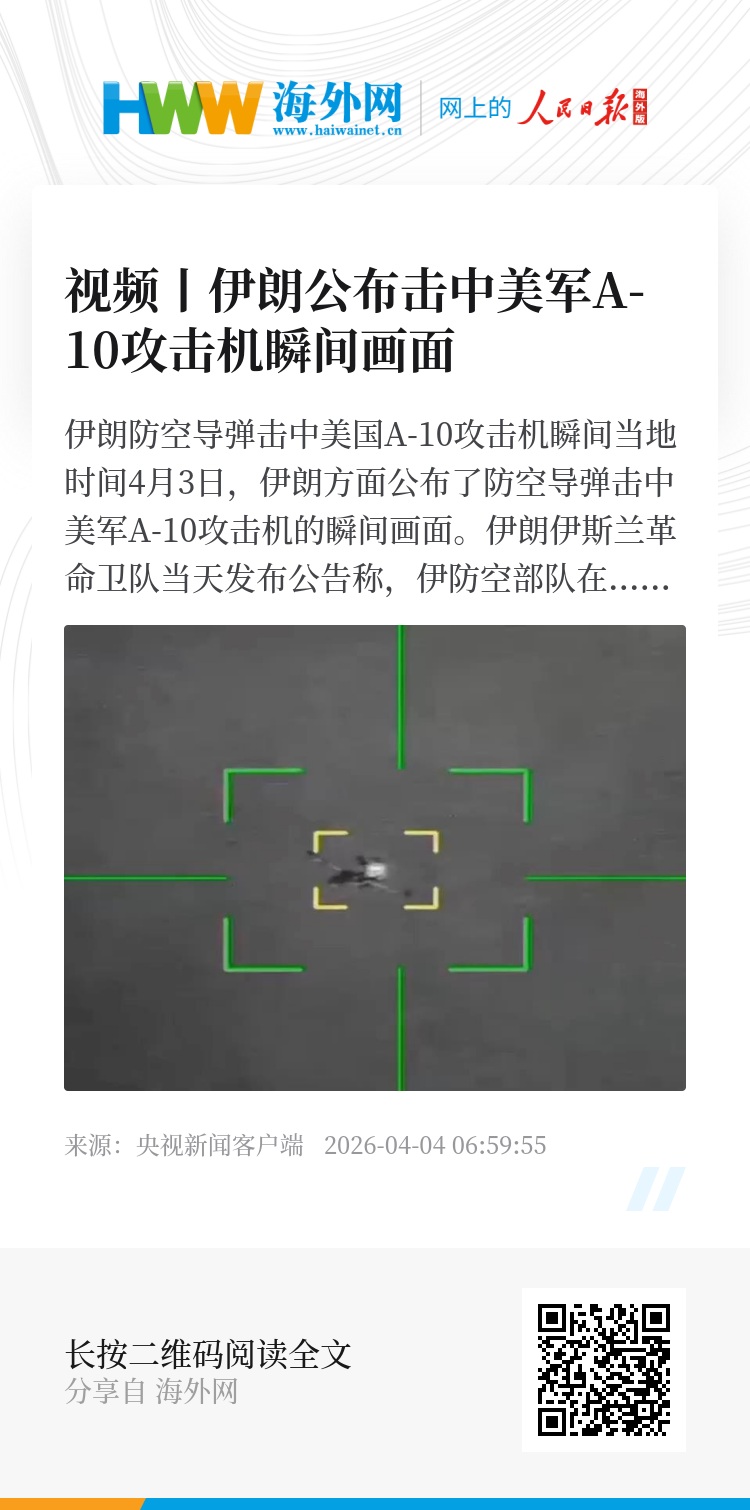 当地时间4月3日,伊朗方面公布了防空导弹击中美军A-10攻击机的瞬间画面。