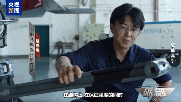 沈阳飞机设计研究所 赵志刚:我们可以看到这个结构其实不是特别大,跟我的胳膊差不多粗。材料选择上,我们选择了高强度的钢去实现这个能力。结构上,在保证强度的同时,这些槽也是为了减轻飞机的重量。