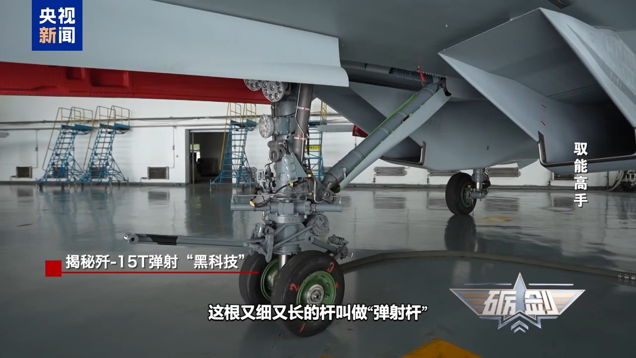 沈阳飞机设计研究所 赵志刚:还有一个不容易看到的特点,就是歼-15T的机头要比歼-15更低。最核心的目的,就是弹射杆在跟弹射装置对接时,能保证每次都是一个相对固定的位置。这样对接效率会更高,飞机的出动效率也会更高,也是提升作战能力的重要保障。