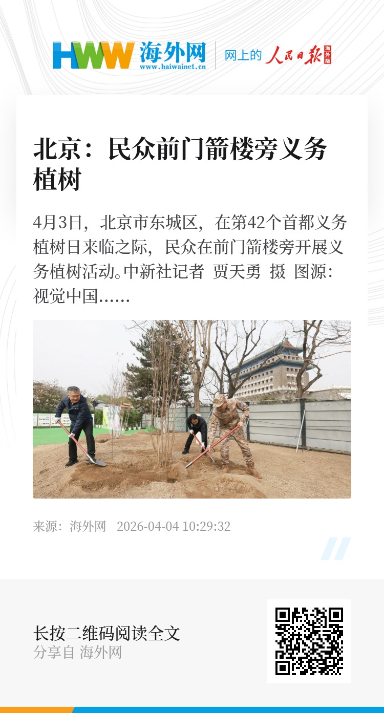 32943100,.北京:民众前门箭楼旁义务植树,.2026-04-04 10:29:32,.204589,.黄之安、卢思宇