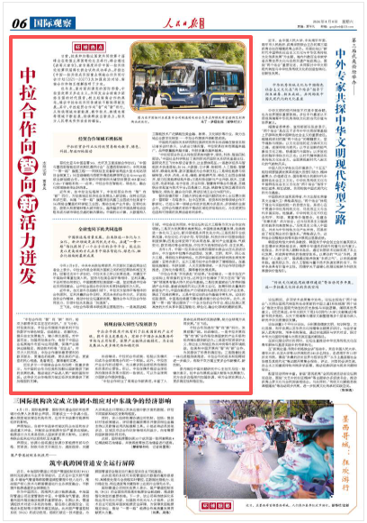 智利安德烈斯·贝略大学拉美中国问题研究中心主任费尔南多·雷耶斯·马塔表示,拉中在贸易、投资和科技等领域合作不断深化,已经从单一领域合作逐步拓展为多层次、多领域的全面合作。这种合作模式有助于推动区域经济结构优化,为实现更加包容和可持续的发展创造有利条件。