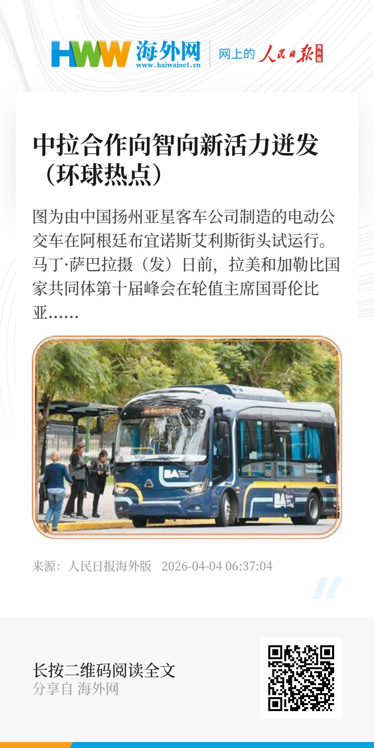 近年来,在中拉论坛框架下,中拉经贸合作向“智”向“新”而行,为拉美地区经济社会发展注入新动能:在特立尼达和多巴哥,共建“一带一路”旗舰项目凤凰工业园成为拉美首个5G网络全覆盖的环保轻工业园,推动当地产业升级;在哥伦比亚,波哥大和麦德林等大城市街头,越来越多的中国品牌电动出租车成为城市绿色交通的新风景线;中国的云计算、大数据和人工智能技术广泛赋能拉美金融、教育、文化娱乐等行业,助力当地企业数字化转型……中拉合作提质升级彰显成效。