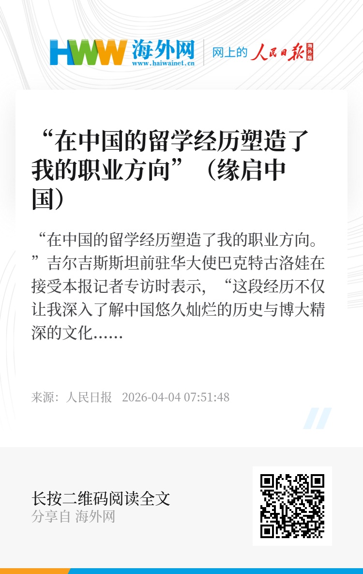 “在中国的留学经历塑造了我的职业方向。”吉尔吉斯斯坦前驻华大使巴克特古洛娃在接受本报记者专访时表示,“这段经历不仅让我深入了解中国悠久灿烂的历史与博大精深的文化,也让我见证了中国的现代化发展,更好地理解中国和中国人民。”