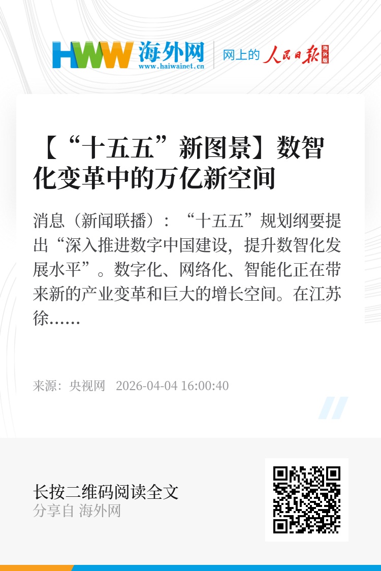 央视网消息(新闻联播):“十五五”规划纲要提出“深入推进数字中国建设,提升数智化发展水平”。数字化、网络化、智能化正在带来新的产业变革和巨大的增长空间。