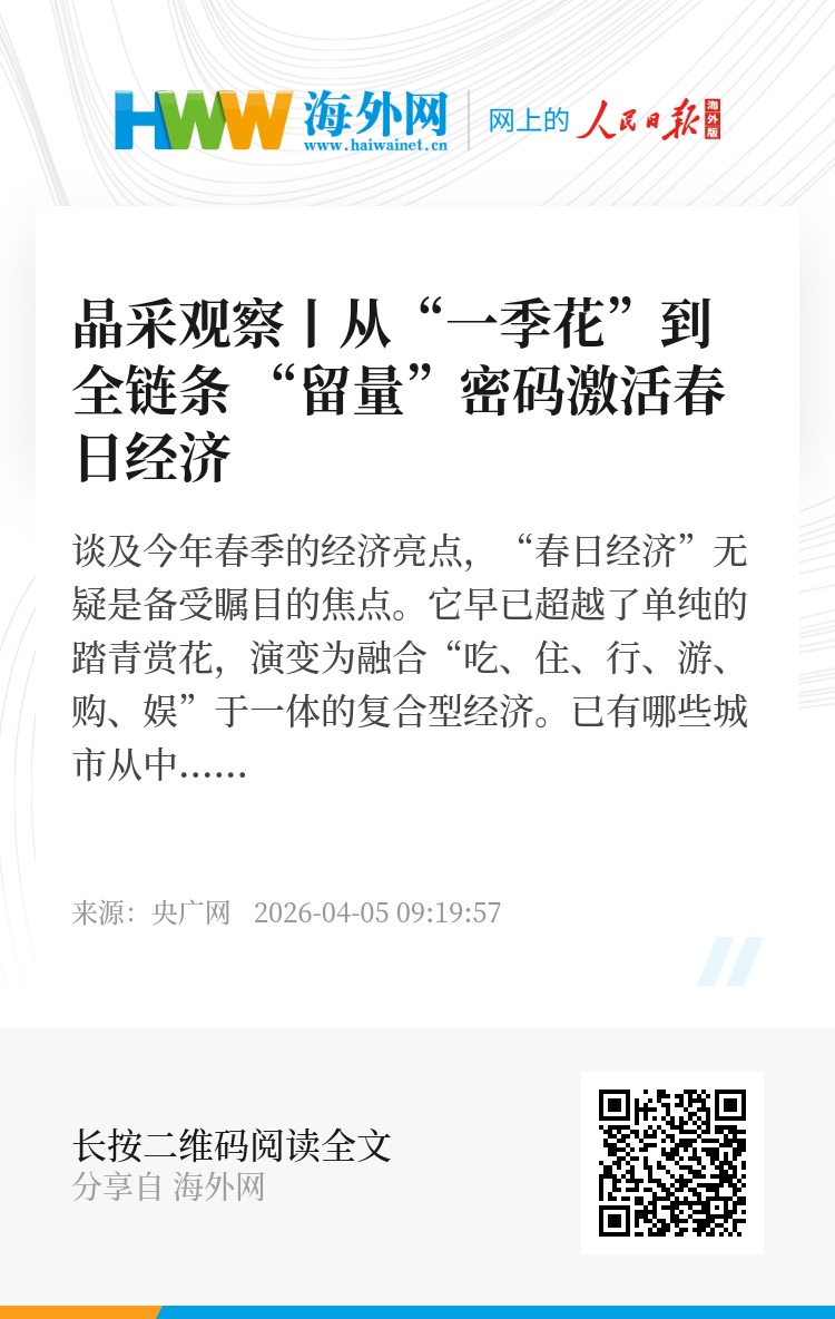 总结这三座城市的经验,我们可以清晰地看到“春日经济”的升级路径:春风吹过的不仅是花朵,更是创新融合提升起来的消费信心。当各地不再满足于“花开人来,花谢人走”,而是精耕细作,把春天的故事讲得更长、更远,这本身就是中国经济韧性与活力的生动写照。