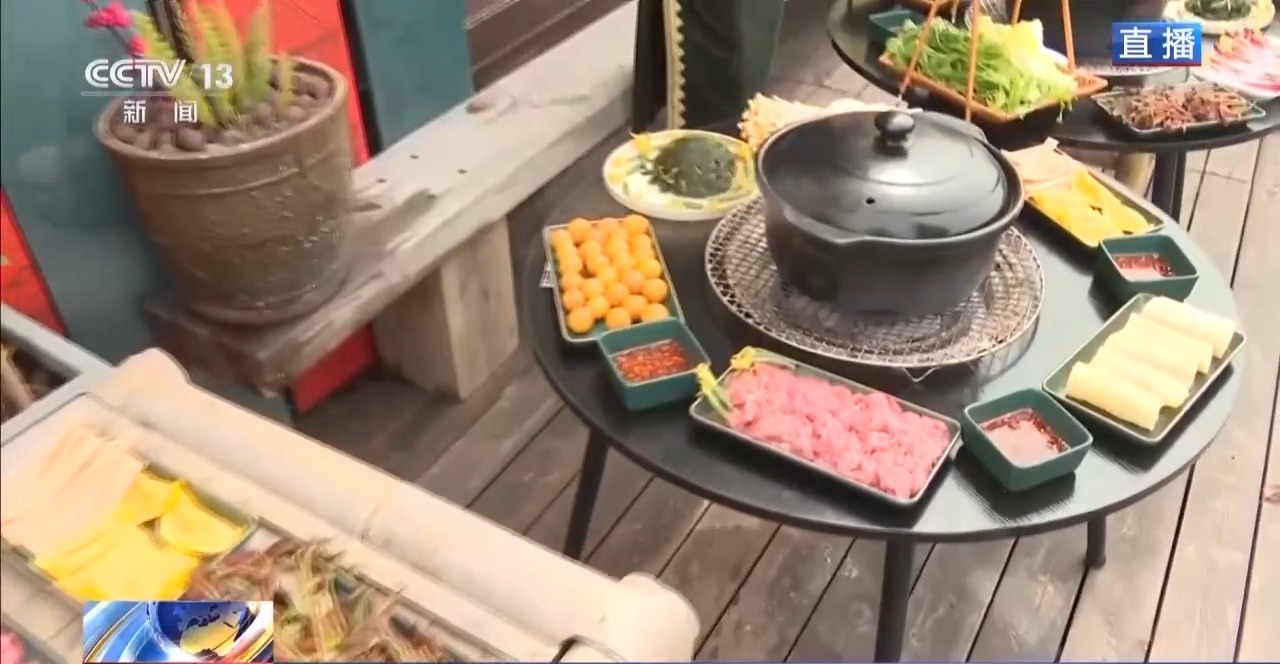 赏完美景,一定要尝尝村里春日的限定美味,这也是庭院趁着晴好天气把当地的特色美食搬到了花海。到了午餐时段,工作人员用本地采摘的绿茶、乌龙茶精心熬制成火锅汤底,清香解腻、契合春日养生理念,而锅里的食材也都是春日限定,您看,像鲜嫩春笋、田间野菜、本地鲜蔬,以及现摘油菜花尖,每一口都是大自然的鲜爽滋味。坐在这儿,放眼望去是金色的花海,桌上是浸润着茶香的火锅,“花海配茶膳火锅”的独特体验,让游客在花间品味烟火,让时光在沸腾与芬芳中慢下来。