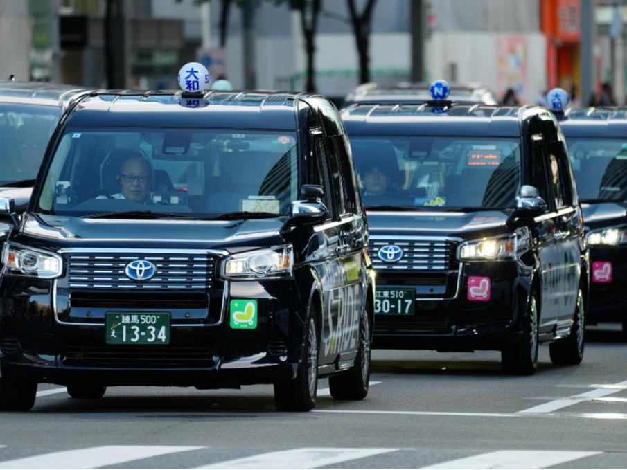 2025年8月14日,在日本东京,出租车在路面上行驶。新华社记者贾浩成摄