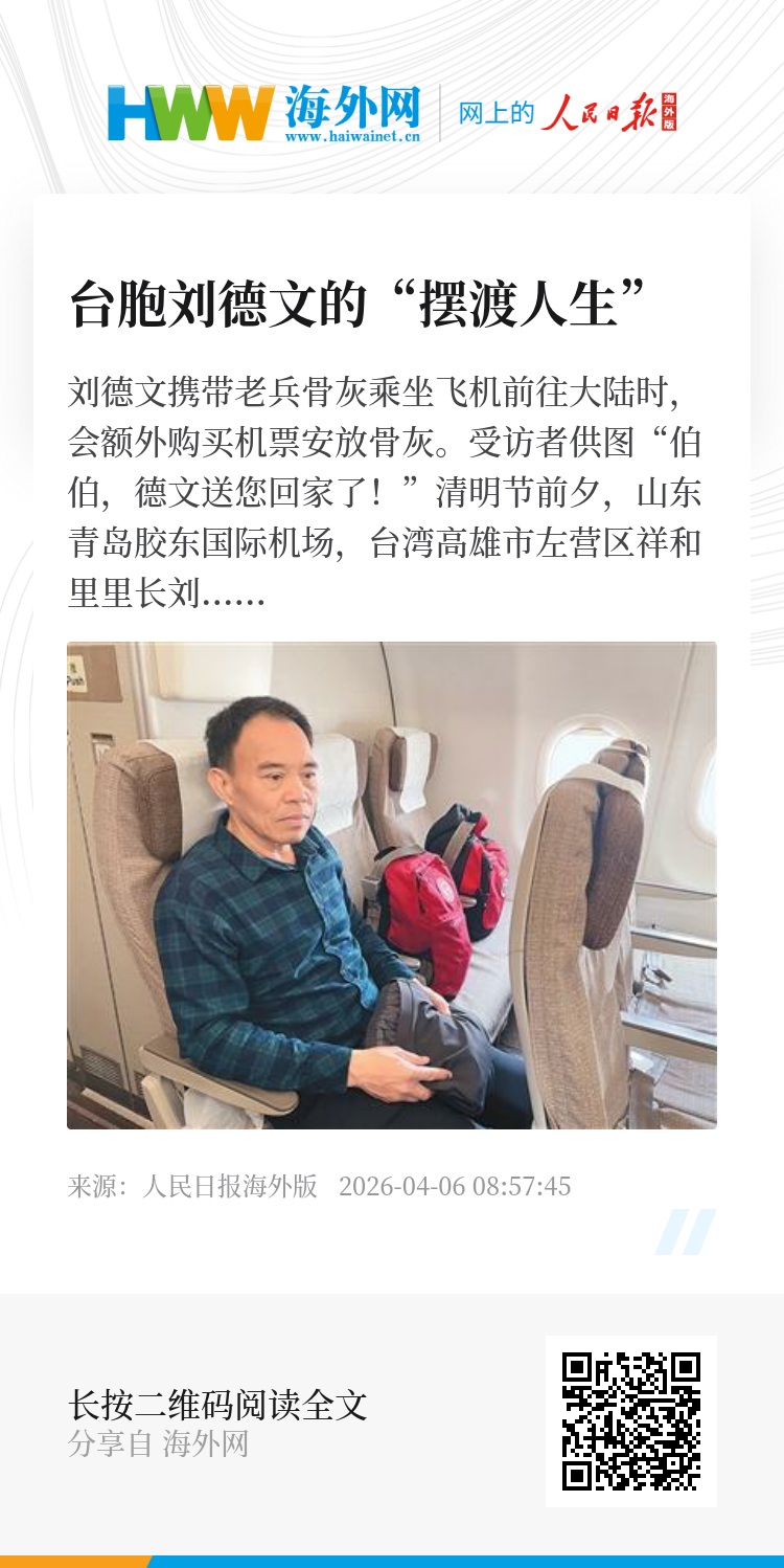 “最让我暖心的是,在大陆,我现在多了很多亲人。每次还没出发,去世老兵的亲属和其他热心人士都会提前和我对接行程,几乎一到机场就能‘无缝衔接’,安排好后续的交通食宿。有时候还会好几家人抢着接待我。再也不用像早年一样因为订不到酒店、问不到路而睡在酒店大堂和车站候车室了。”刘德文开心地说,就连过海关时,工作人员认出他都会点头致意;空乘也了解他的故事,时常代表机组成员递来手写卡片。这些关心都让他感到很温暖。