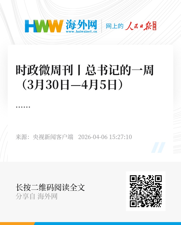 时政微周刊丨总书记的一周(3月30日—4月5日)
