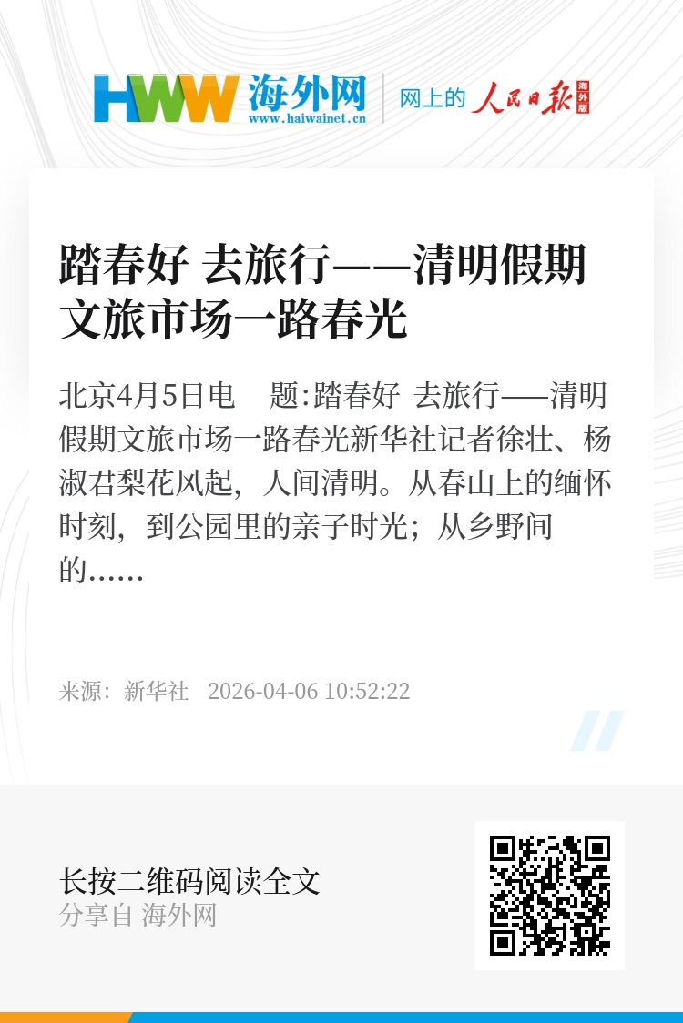 新华社北京4月5日电 题:踏春好 去旅行——清明假期文旅市场一路春光