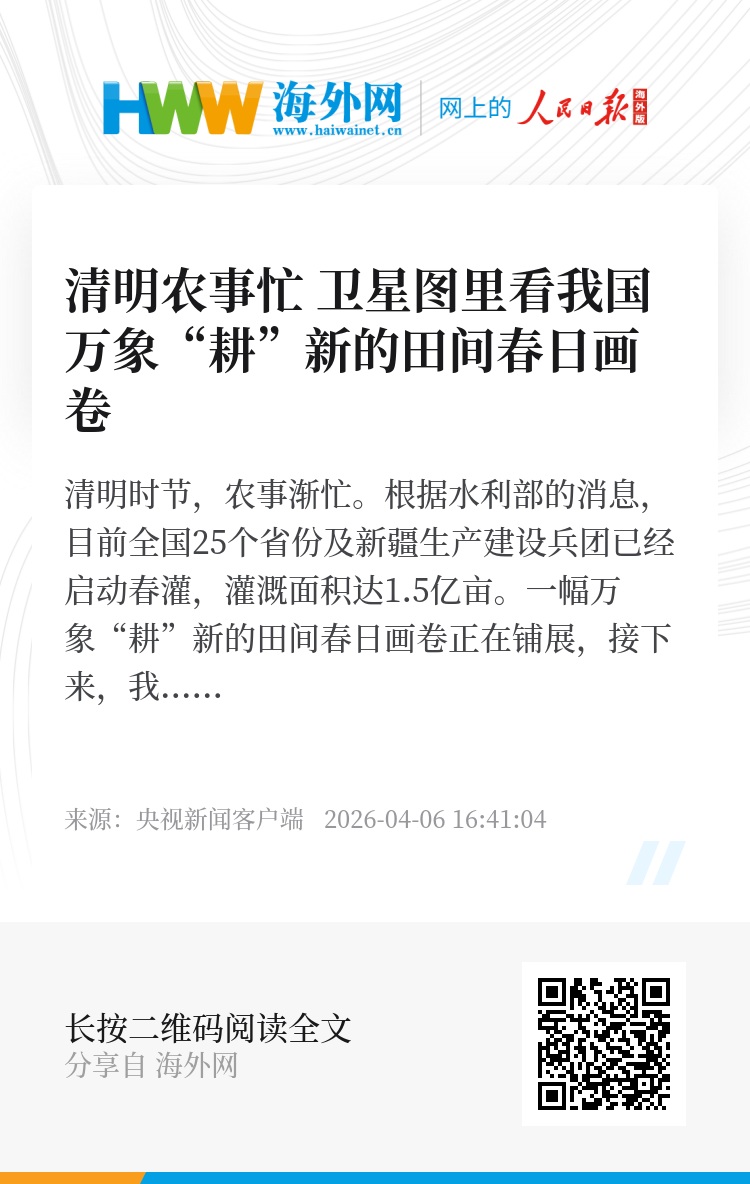 清明时节,农事渐忙。根据水利部的消息,目前全国25个省份及新疆生产建设兵团已经启动春灌,灌溉面积达1.5亿亩。一幅万象“耕”新的田间春日画卷正在铺展,接下来,我们通过卫星图,了解当前全国春耕的整体情况。