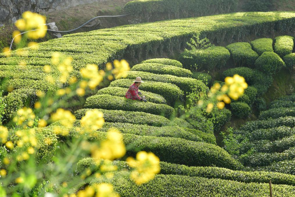 4月4日,茶农在三峡库区湖北省宜昌市秭归县茅坪镇长岭村一生态茶园采茶。新华社发(王辉富 摄)