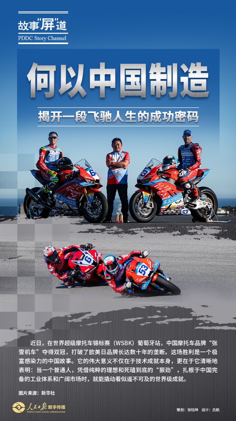 近日,在世界超级摩托车锦标赛(WSBK)葡萄牙站,中国摩托车品牌“张雪机车”夺得双冠,打破了欧美日品牌长达数十年的垄断。何以中国制造?本期故事“屏”道,让我们一起走进张雪的飞驰人生,感受有关梦想、底气、信任的动人故事。