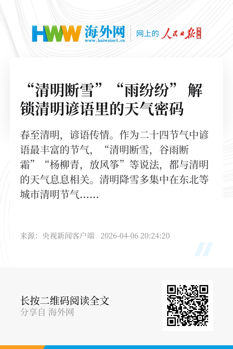 春至清明,谚语传情。作为二十四节气中谚语最丰富的节气,“清明断雪,谷雨断霜”“杨柳青,放风筝”等说法,都与清明的天气息息相关。