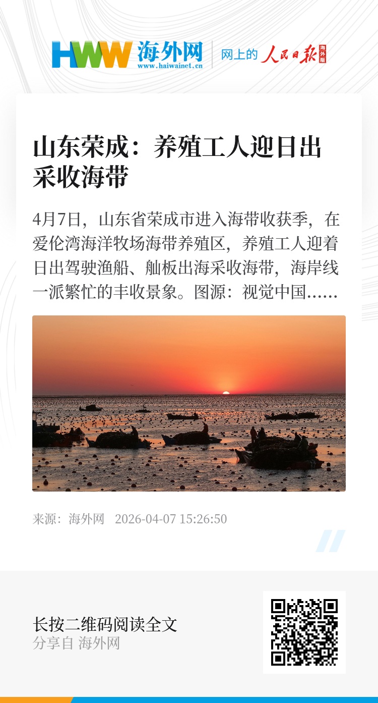 32943668,.山东荣成:养殖工人迎日出采收海带,.2026-04-07 15:26:50,.204555,.陈菲扬、侯兴川