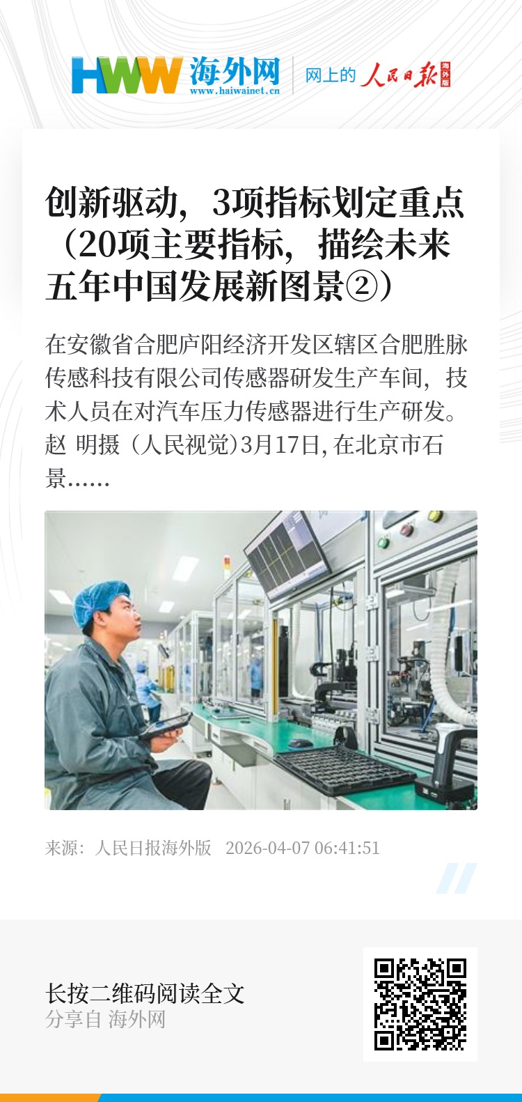 全社会研发经费投入年均增长7%以上、每万人口高价值发明专利拥有量到2030年大于22件、数字经济核心产业增加值占GDP比重到2030年达到12.5%……在“十五五”规划纲要设定的20项指标中,有3项指向创新驱动。