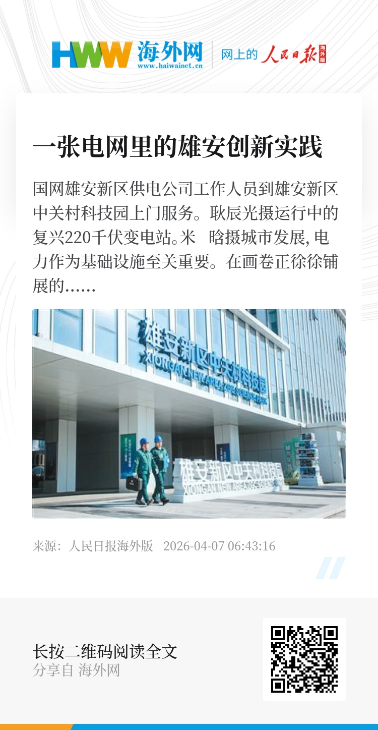 电网的实践,正持续为雄安新区的创新发展提供坚实支撑。(本报记者 刘少华)