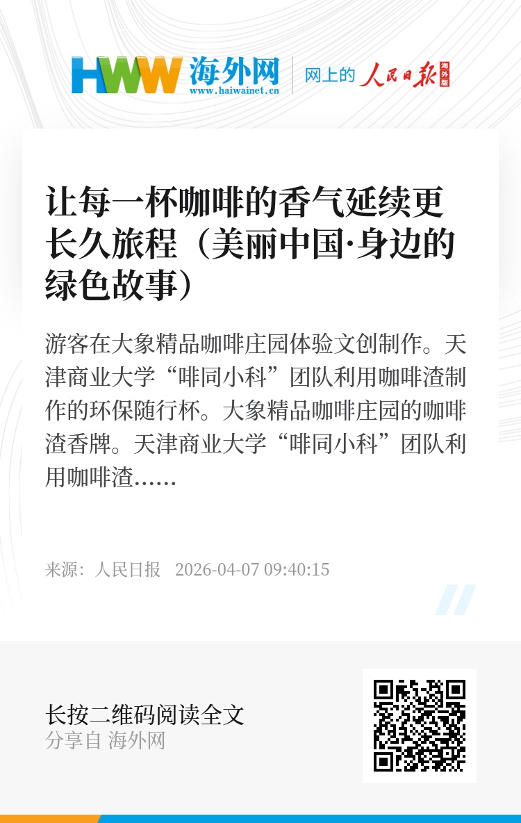 陈平仙的庄园里,DIY体验区依旧热闹,游客们跟着陈平仙研磨咖啡渣、制作香牌,咖啡香与欢声笑语交织。从“废弃累赘”到“增收宝贝”,咖啡渣实现“逆袭”。未来,我们相信,咖啡渣再生产品将走进更多人的生活,让每一杯咖啡的香气,都能延续更长久的旅程。(本报记者 李茂颖)